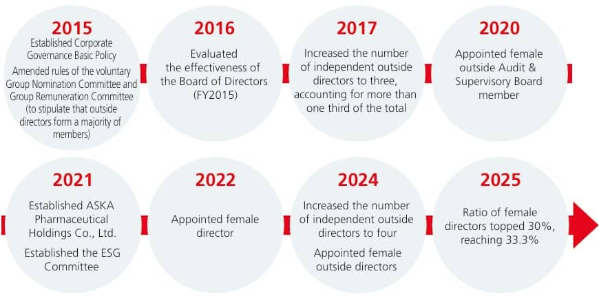 As a signatory to the United Nations Global Compact (hereinafter referred to as "UN Global Compact"), ASKA Pharmaceutical Holdings Group (hereinafter referred to as "Group") agrees with the Ten Principles in the four areas (human rights, labor, environment, and anti-corruption) of the UN Global Compact and will implement them under the responsibility of top management itself.
